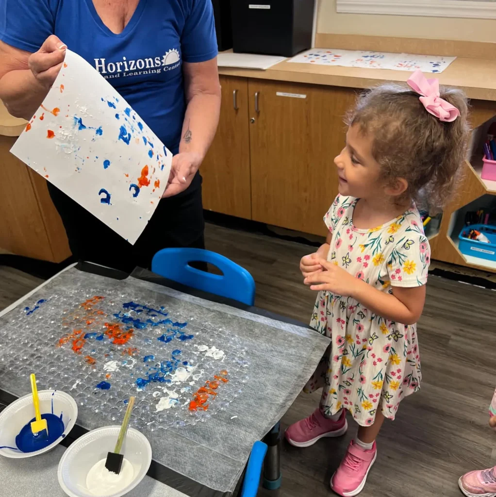 Of course, a major goal of the program here at New Horizons is socialization. A group play setting offers unlimited opportunities for children to explore acceptible behaviors and practice social skills that are necessary for getting along well with others. Each and every child is encouraged to wait their turn, to accept and respect routines and rules of the school environment, to use words to ask for something without physically acting out their needs, and to recognize possibilities from another child’s point of view.